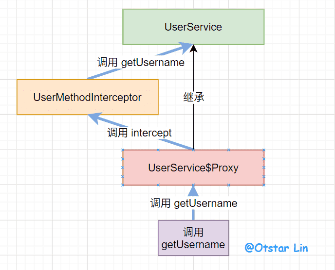 - Cglib 代理:使用 Cglib 动态生成代理类,基于子类